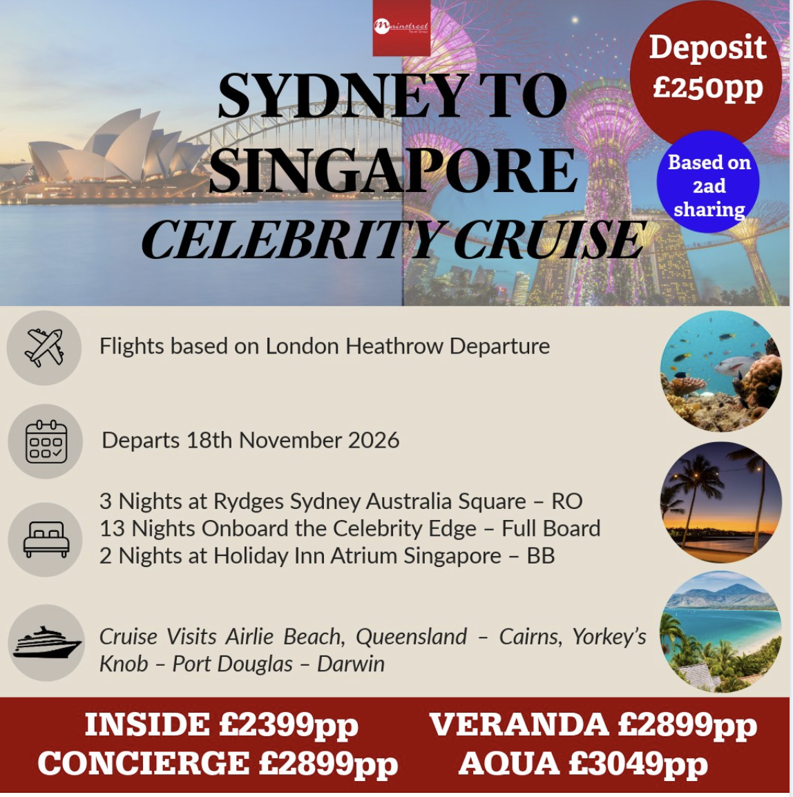 Celebrity Cruise Special – Sydney – Singapore with Stopovers and flights – November 2026
