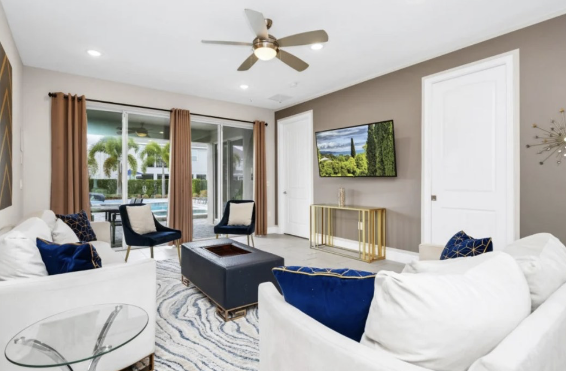 Escape to fun and relaxation at this vibrant Orlando villa. With six bedrooms and six-and-a-half bathrooms, it’s perfect for families or groups. Enjoy the home theatre, games room, sparkling pool, hot tub, sun loungers, and alfresco dining with BBQ.